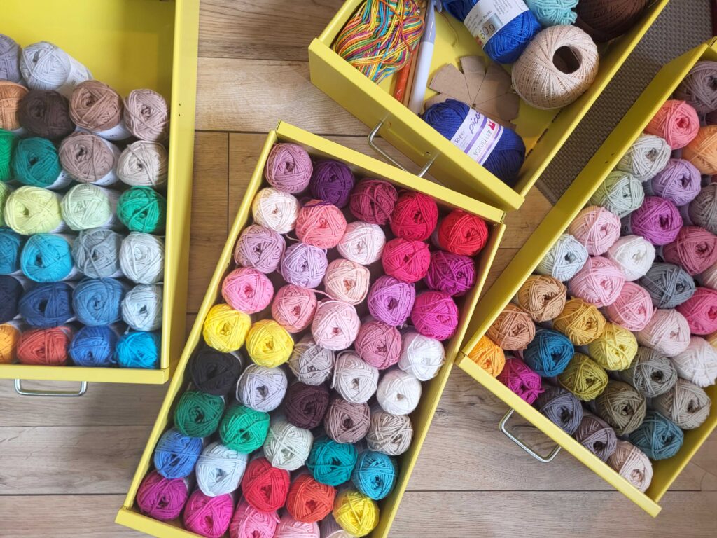 Mein Alltag ist sehr voll: ich bin Vollblut-Mama, arbeite in meiner eigenen Werbeagentur mit Schwerpunkt auf Künstler:innen, gehe viel ins Theater und ins Tanztraining und betreue die örtliche Bibliothek. Wenn ich mich dann abends hinsetze und kreativ arbeite, meist niederländische Popmusik dazu höre und mich einfach vom Tun leiten lassen kann, erdet mich das ungemein. Und weil ich meine Produkte nicht in der Lade verkommen lassen möchte, habe ich meine eigene Kreativmanufaktur eröffnet.